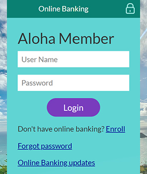 Go to APFCU’s home page, alohapacific.com. Click on Enroll in the "Aloha Member" log-in box.
