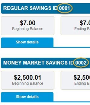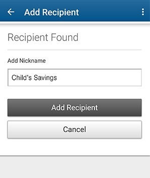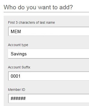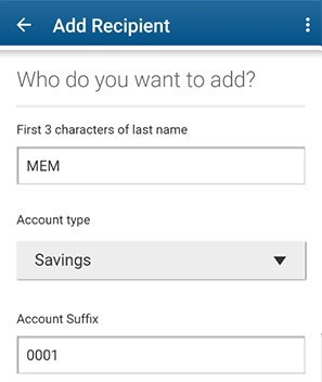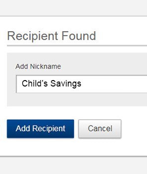 Use a unique name for the account (e.g. Child's Savings) to easily identify different accounts for future transfers. The 4-Digit Suffix can be found on the recipient's Account Summary or Statement.