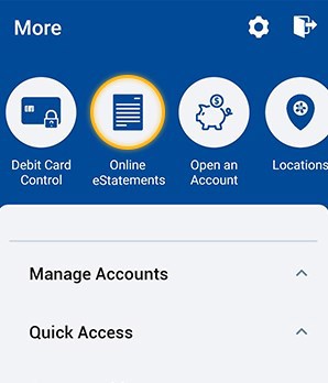 For Android devices, tap on the More... tab on your menu bar and then on Online eStatements.