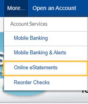 Select 'Online eStatements' in the More... drop-down menu in the main navigation, or click on the convenient link in our Featured links section at the top-right.