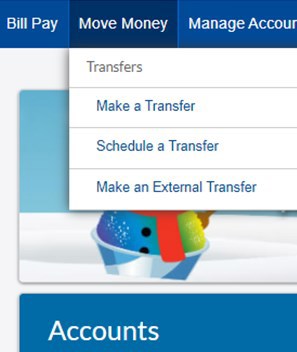 using a desktop or laptop computer from our home page, alohapacific.com. Hover over the 'Move Money' menu, then click on Make a Transfer.