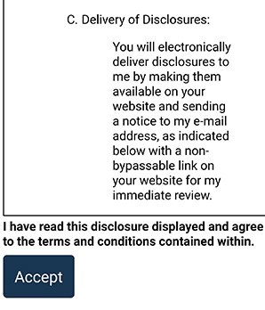 In the window provided, you can use the vertical scroll bar to view the entire document before clicking Accept.
