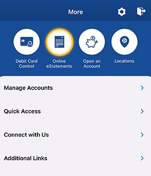 On Apple devices, tap on the More... tab on your menu bar and then on Online eStatements.